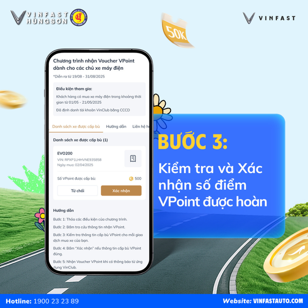 Để tạo điều kiện thuận lợi nhất cho Quý khách, VinFast đã quyết định gia hạn thời gian yêu cầu bồi hoàn điểm VPoint. Cụ thể: